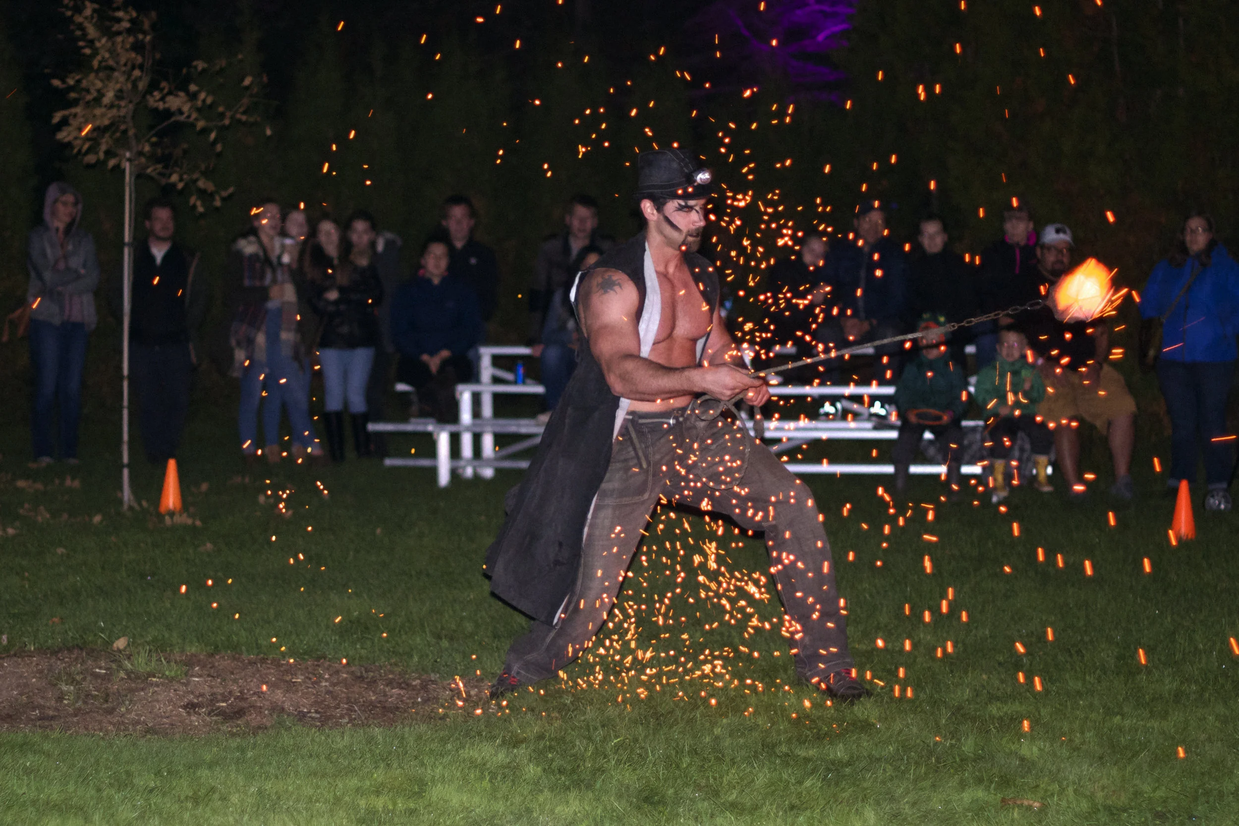 Music filled the air with a rhythmic beat, witches brewed a concoction for children and another special one was available for adults. A wizard shared his high-powered telescope for views of the stars and the moon. Skeletons danced in a brilliant neon glowing Day of the Dead tunnel. A pumpkin village led the way to a giant spider’s lair. Ghostly dresses floated in the wind, spirit fish leapt out of the brook, and a sea serpent made an appearance in the pond. Circus Stella fire dancers also twirled, whirled and swirled fire batons, hoops, and fireballs wowing the crowd.