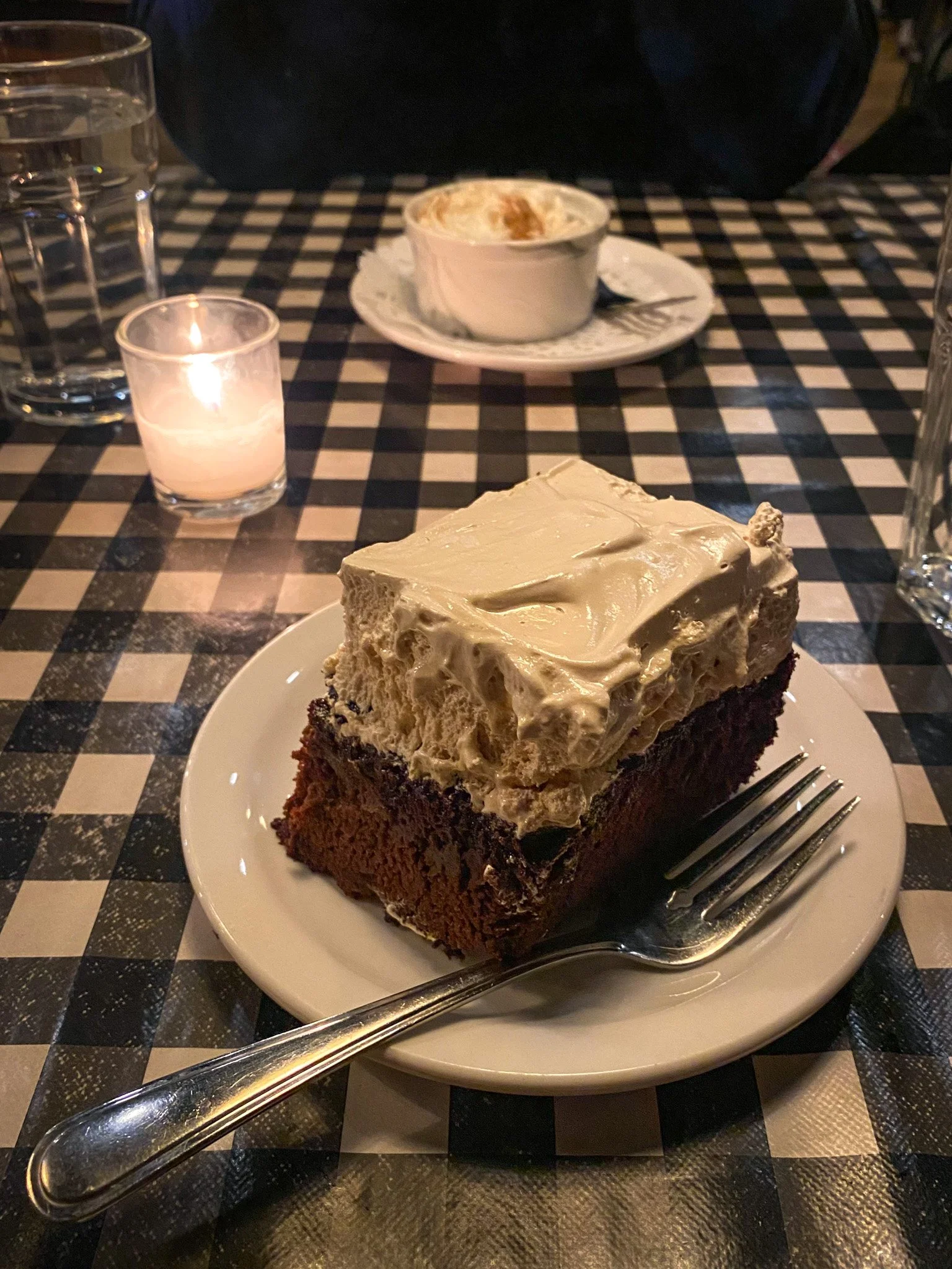 When it came time for dessert, I was torn between the Irish Crรจme brรปlรฉe and the Chocolate Cake with boiled icing. The cake won, as Iโve had it here before and it was just as moist as I remembered. And the icingโoh, that decadent icingโwas like a dream come true. Eric couldnโt resist the Mini Pumpkin Pie with whipped cream. He called it more of a pumpkin pudding than a pie, but either way, it was devoured in no time. Of course, he couldnโt leave my cake alone, either and ended up eating half of that, too. Iโm sure the Crรจme brรปlรฉe wouldโve been equally delightful, but Iโm not complaining about my choice. Claudineโs is one of those places that never disappoints. Whether itโs breakfast, lunch, or dinner, itโs always a hit. But if youโve only experienced their daytime offerings, the Dine Around Freddy event is the perfect excuse to savour a dinner here. Trust me, itโs worth it.