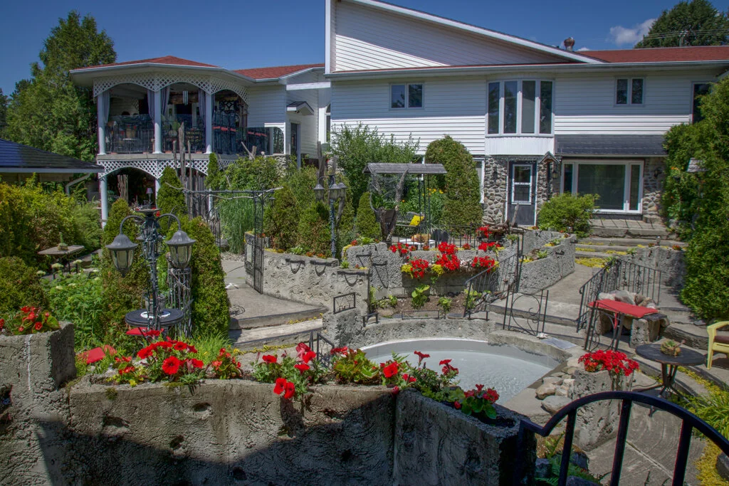 Le Jardin de Gus is the pride and joy of Adrienne (Gus) and Camille Roy. This privately-owned and cared for garden is located at 102 Principale Street in Edmundston, in the historic heritage district of Saint-Basile. On May 31, 2007 at the Provincial Legislature Assembly, MLA Madeleine Dubรฉ publicly recognized Le Jardin de Gus as one of the finest gardens in New Brunswick.