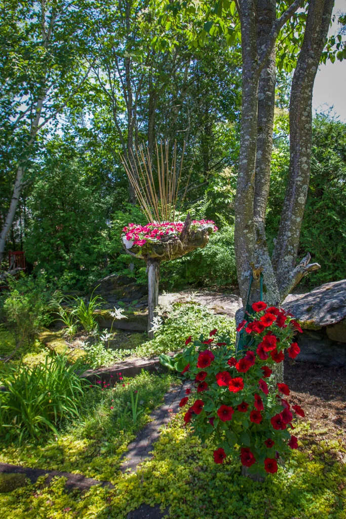 Gusโs sister Colette Clavet created the beautiful stained glass pieces in the garden too. What a talented family!