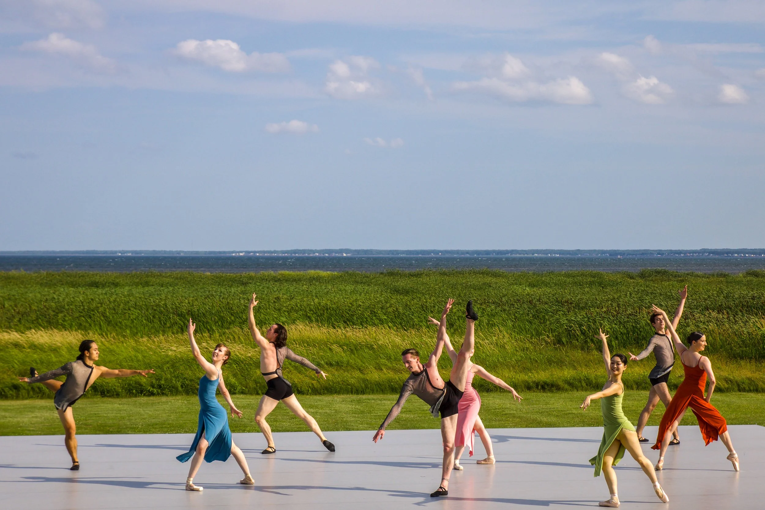 Igor sees this as both a creative challenge and a gift. โI am inspired by the wind, the grasses, the birds. It brings a different kind of energy. The movement must respond to the environment. It has to be organic and flow with the natural elements that surround the stage. The sun, the cloud configuration, gentle breezes, the birds that decide to join the performance. It is extraordinary.โ Igor has shared that he has experienced birds singing close to the melody of the music. He also felt that Ballet By the Ocean was not disturbing nature but instead, in symphony with it.