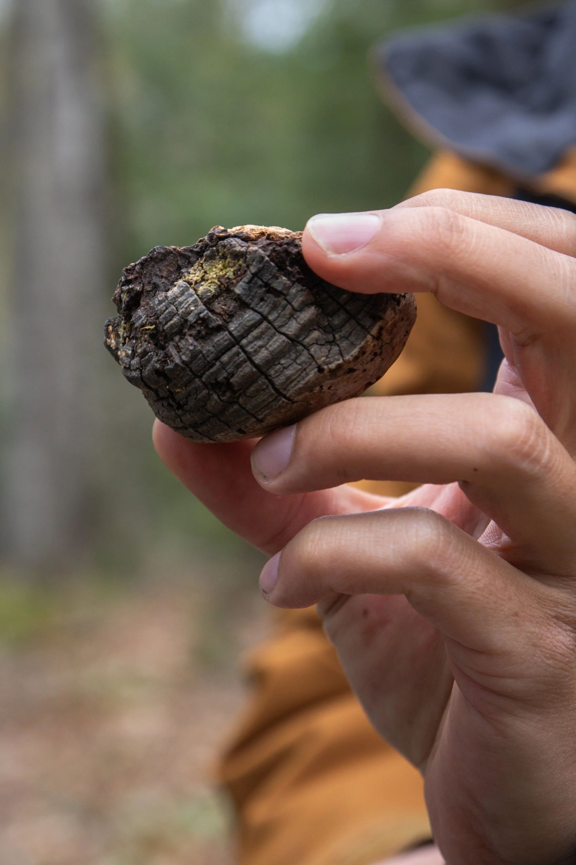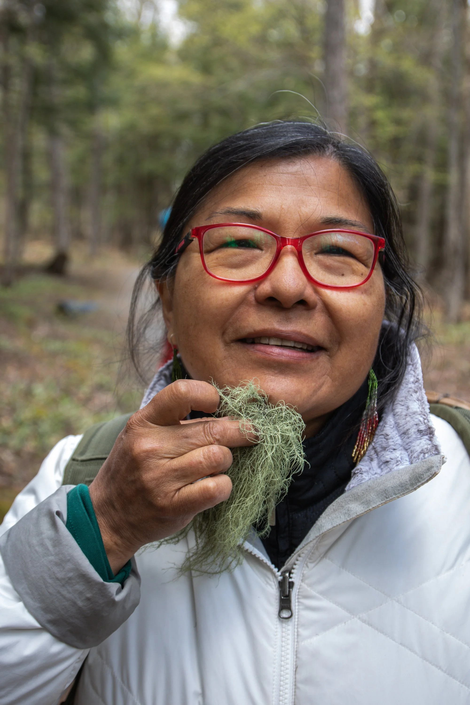Early in the walk, Anthony paused beside a patch of forest floor and pointed something out to Cecelia. She nodded, reached into a small pouch, and asked each of us to hold out our hands. Into our palms, she placed a pinch of tobacco. She explained that before we take anything from the Earth, we must first offer our thanks. Whether gently dropped to the ground or released into the wind, the act of giving tobacco is a sacred gesture of gratitude. We followed her lead, grounding ourselves in humility and respect.